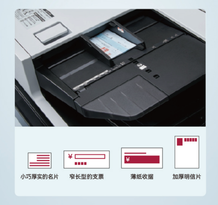 面对纸质文件堆积、票据名片散乱难管、扫描效率低下等数字化转型挑战,理光IMC8010系列通过技术升级,助力企业打通数字化转型的“最后一公里”。设备搭载全新一代双面同步扫描自动送稿器,采用接触式图像传感器同步读取原稿,实现高达300页/分钟的彩色双面高速扫描,同时有效保护原稿。该送稿器支持多种纸张厚度与尺寸,可快速读取名片、收据、支票等小尺寸文件,助力财务、人事等工作快速实现数字化办公。
